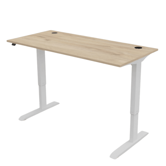 A smooth height-adjustable desk that supports sitting and standing for better comfort and focus.