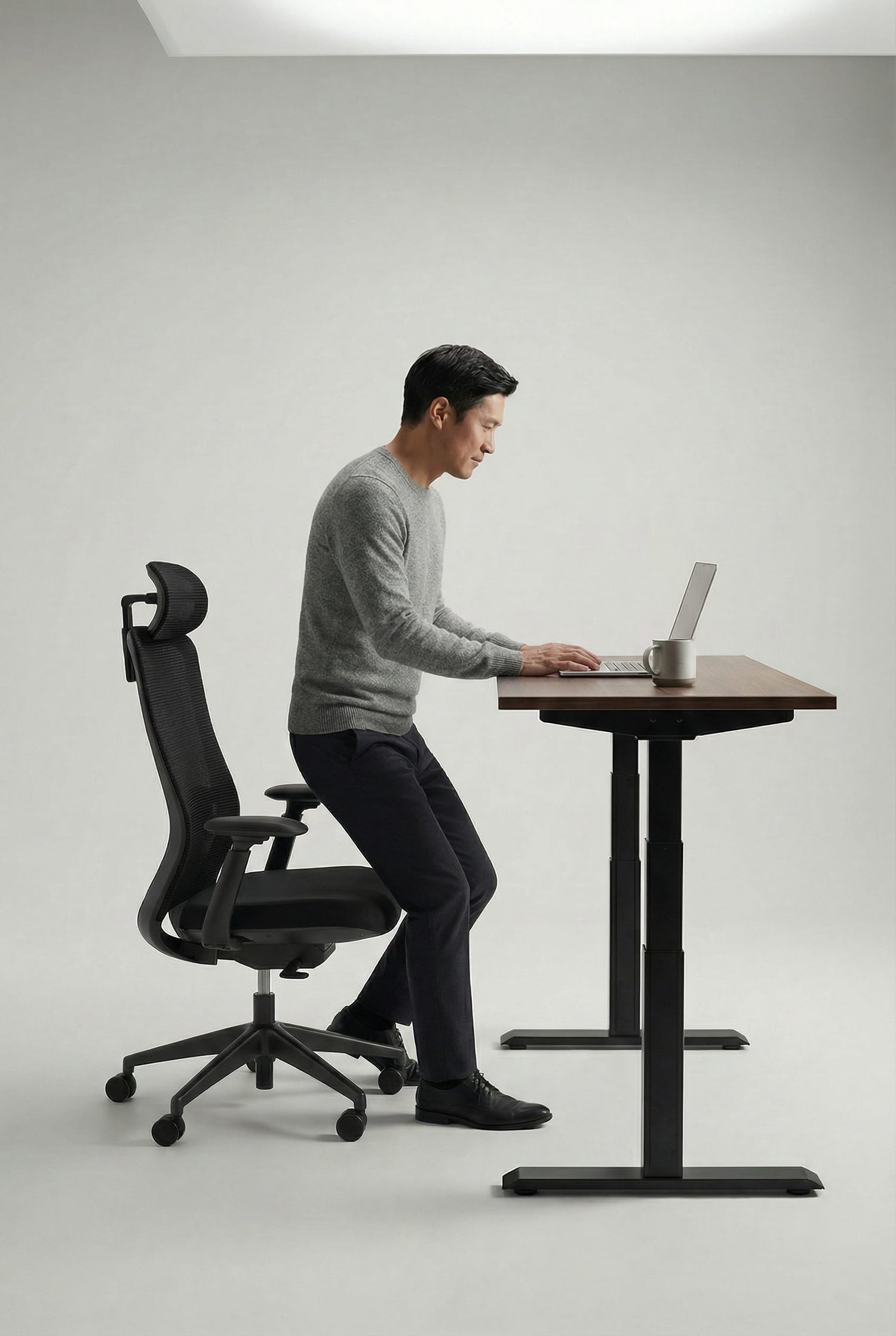 A desk that lets you switch between sitting and standing to reduce fatigue and improve posture.